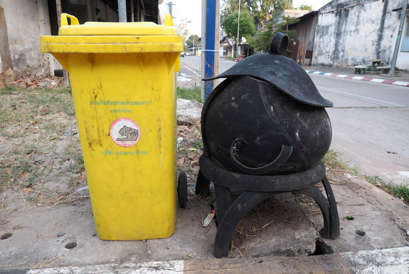 Savannakhet ist tatsächlich genauso verschlafen, wie wir es uns vorgestellt haben. Fast zu verschlafen, finde ich. Die langen, breiten Straßen und durchweg flachen Häuser erinnern mich etwas an eine amerikanische Vorstadt im Nirgendwo. Was nicht in diese Fantasie passt, sind die vielen Kindergärten, die hier auch genauso heißen. Ich habe im Internet gelesen, dass die Einrichtungen nach DDR-Vorbild entstanden sind. Und tatsächlich erinnern mich manche Spielgeräte hinter dem Zaun daran: bunt angemalte Autoreifen dienen als Kletterparcours. Die niedlichen runden Mülltonnen, die in Laos am Straßenrand stehen, werden übrigens auch komplett aus alten Autoreifen hergestellt. Geniales Upcycling.